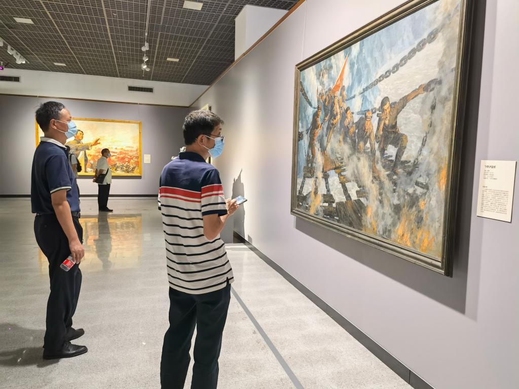 全体党员参观了“英勇斗争”、“火红建设”、“春潮涌动”、“美好生活”、“艺苑新彩”五大篇章的二百余件优秀作品。一幅幅生动的画卷向党员们展示了中国人民在共产党的带领下,从站起来、富起来到强起来的历史伟业,热情讴歌了日新月异的中国特色社会主义新时代。党员同志们沉浸其中,感叹中国共产党历经艰难险阻创造出的人间奇迹,感悟中国人民勇于奋斗、不怕困难、敢为人先的精神力量,感受到新中国在共产党领导下的百年奋斗路来之不易。