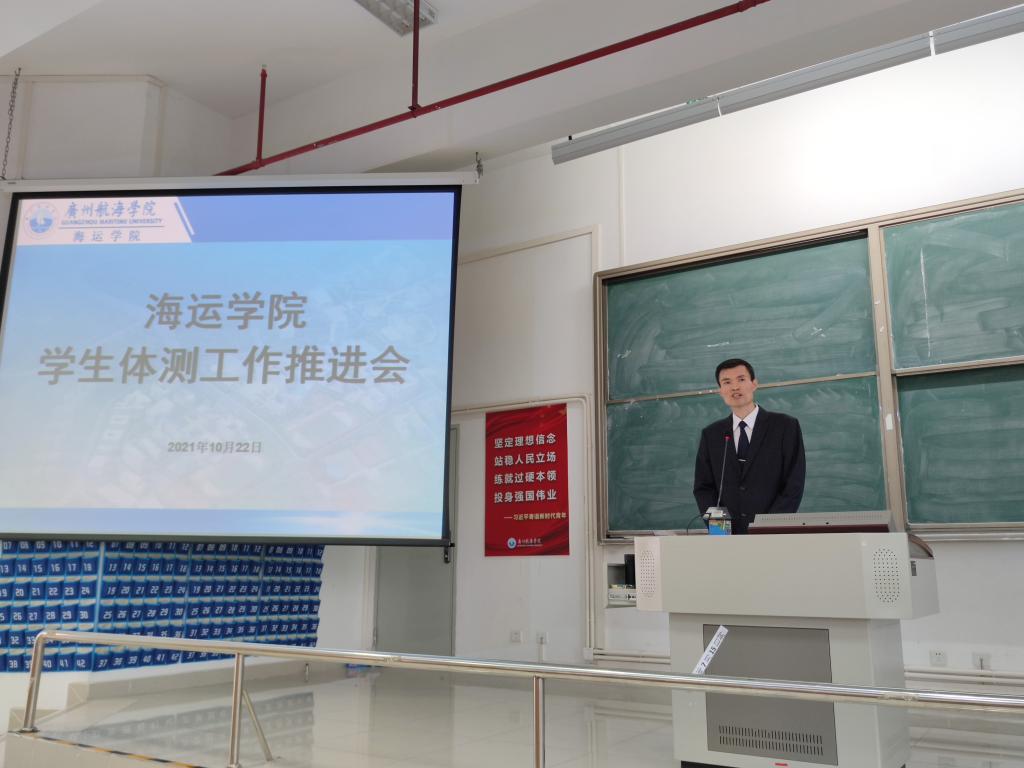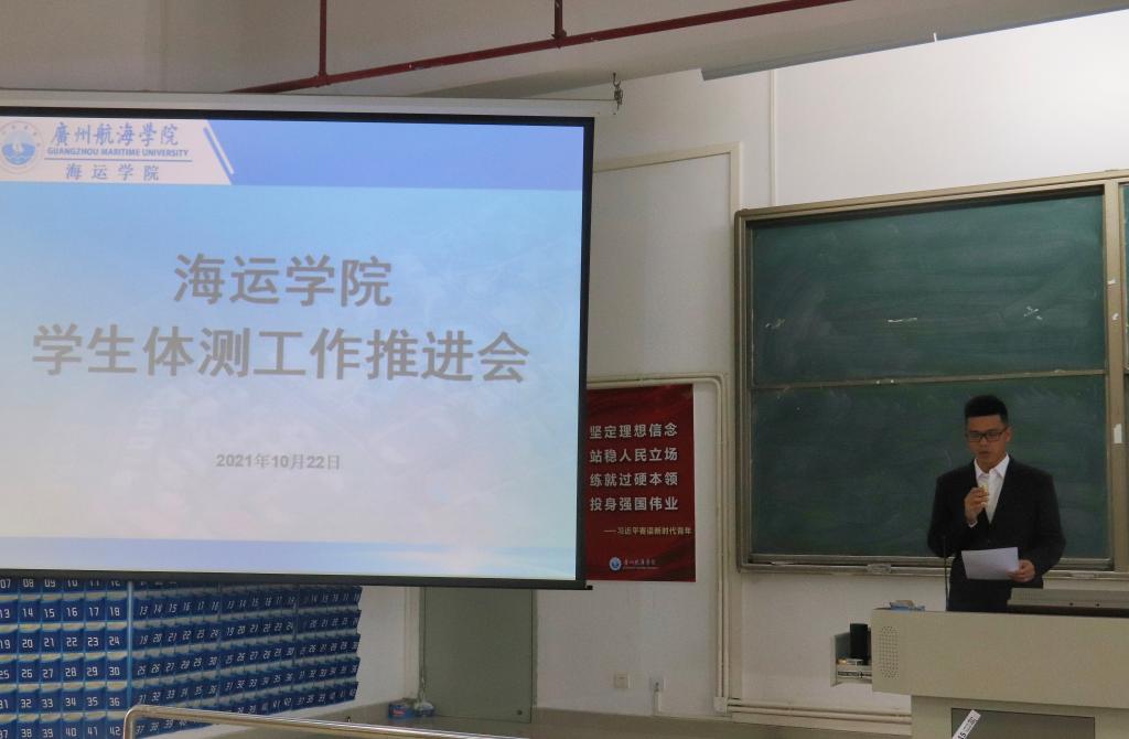 学生体质健康标准测试奖励办法》,对个人、宿舍及班级优良达标后都有相应奖励措施,这是我院为了鼓励全院同学积极参与运动健身、切实提高体质健康测试优良率的一项重要举措。随后,林少栋老师对我院同学积极响应国家号召、落实学校要求、每日主动进行体测项目训练、每周班级集体进行自测给予肯定,同时要求同学们从思想上加强重视,走下游戏、走出宿舍、走向操场,培养健康、积极向上的运动及生活方式,并要求全体学生干部在同学中发挥先锋带头作用,带领大家养成好习惯、形成好风气,组织好宿舍及班级同学,加强锻炼。