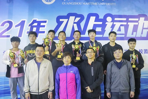 运动健儿夺得了男子团体总分第一名、女子团体总分第二名(总分并列第一)、团体总分第一名的优异成绩,海事212班邬轶欣同学在男子50米自由泳、男子50米仰泳均打破学校记录,航海214班杨靖涛同学在男子50米自由泳也打破学校记录。