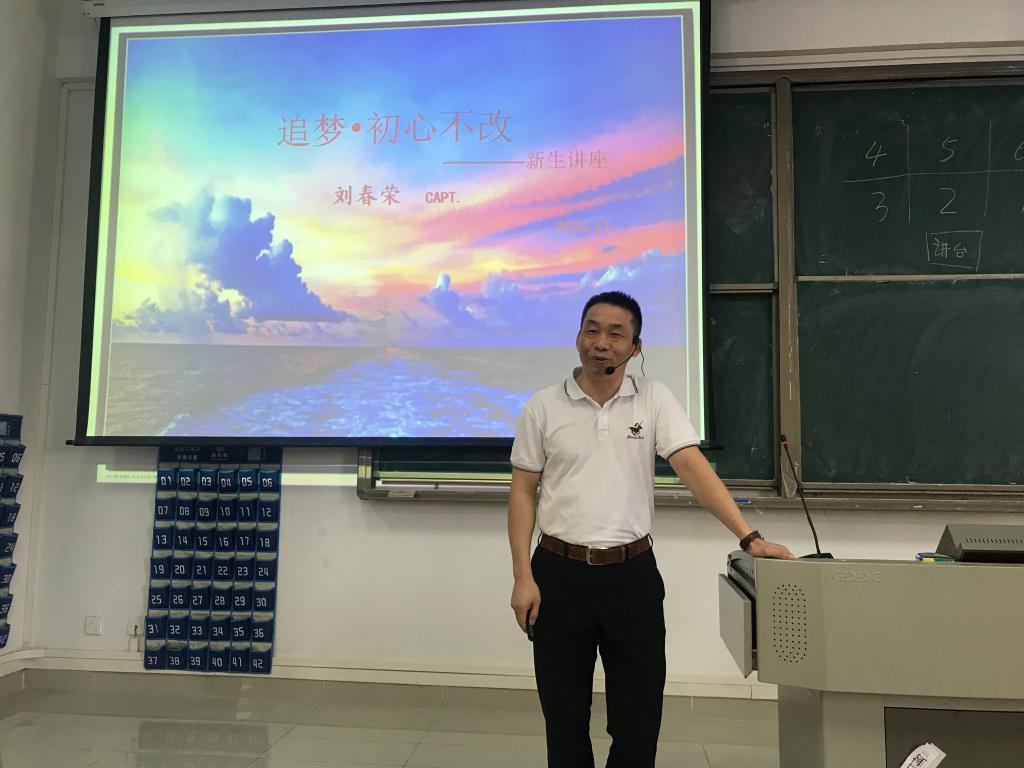 两次参加亚丁湾护航的刘春荣船长在健兵楼400教室为航海21级全体同学作专题讲座,讲述亚丁湾护航舰队上航海人的故事,讲座由吴鸿瑞老师主持。