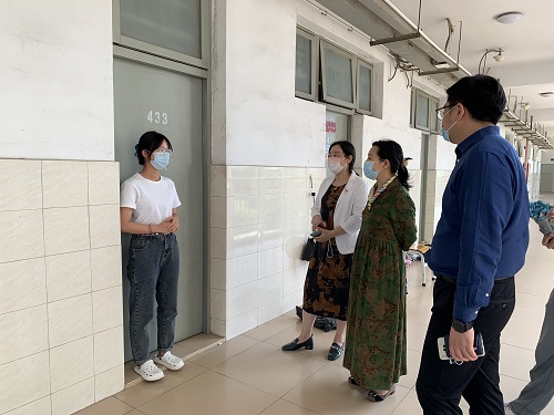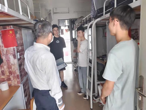 在宿舍走访过程中,老师们了解同学们近期疫情防控政策的落实情况,对同学们在学校疫情防控工作方面的理解和配合表示感谢,提醒同学们要经常做好宿舍卫生清洁,保持通风,戴好口罩,坚持体育锻炼,配合班干部做好晨午晚检,出现发热、咳嗽等异常情况及时上报。随后,各位老师重点看望关心了因疫情原因线上上课的同学,了解他们的上课过程是否有问题,生活保障是否有困难,叮嘱同学们要配合学校做好居家健康观测。在走访毕业班宿舍时,老师们详细询问同学们在考研、毕业实习、论文撰写、职业资格考证情况及未来的职业目标定位,鼓励同学们明确职业发展方向,充分利用现有学习资源,全面提高综合素养,努力实现既定职业目标。