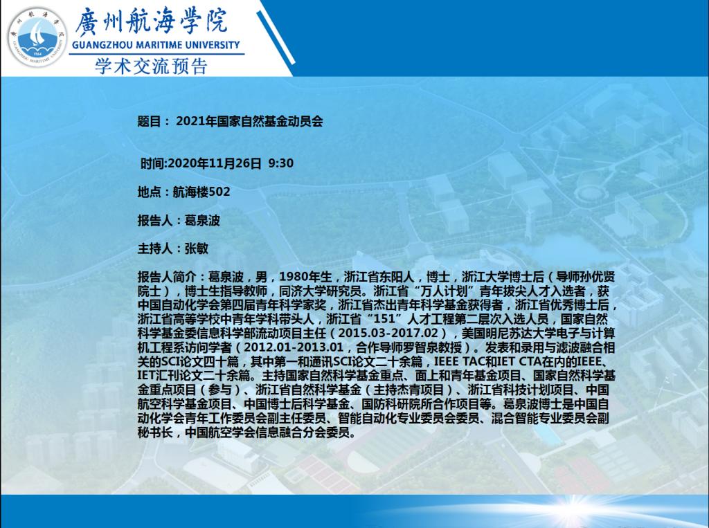 葛泉波博士学术讲座:2021年国家自然基金动员会