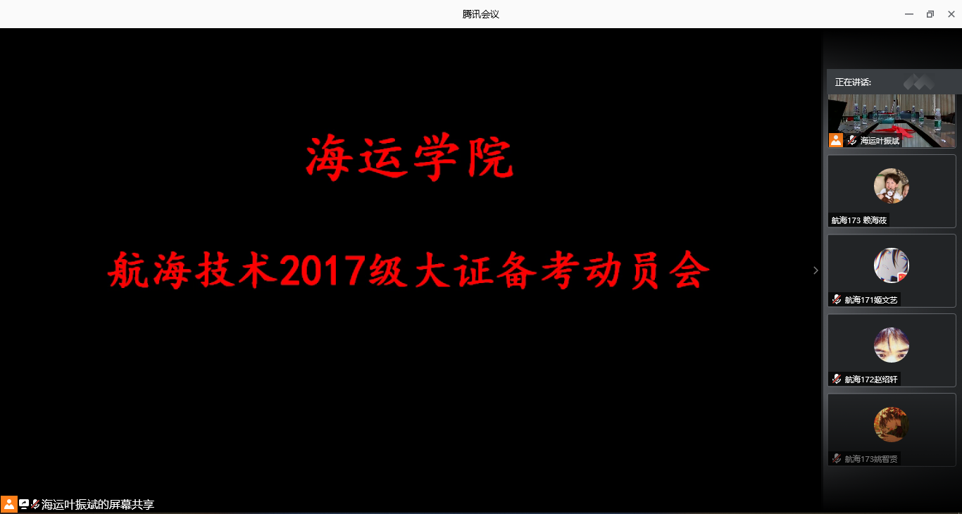 在腾讯会议召开航海技术17级大证备考动员会。学校副校长兼唐人街影院