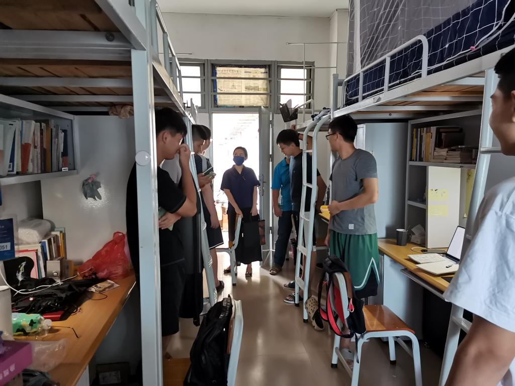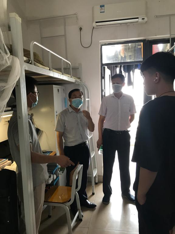 党委施斌书记、林少栋副书记,刘传润副院长带领部分教师代表、全体中队长分三组深入宿舍看望返校学生