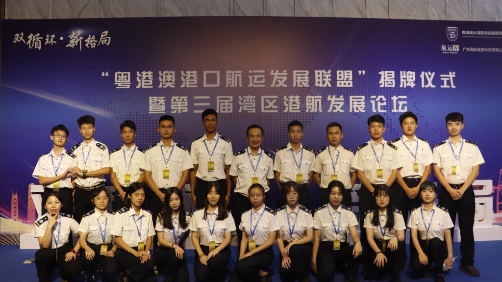 供稿)10月28日,“粤港澳港口航运发展联盟”揭牌仪式暨“双循环·新格局”第三届湾区港航发展论坛在广州南沙成功举行。我校20名志愿者在赵垒老师的带领下积极参加,助力论坛成功开展。