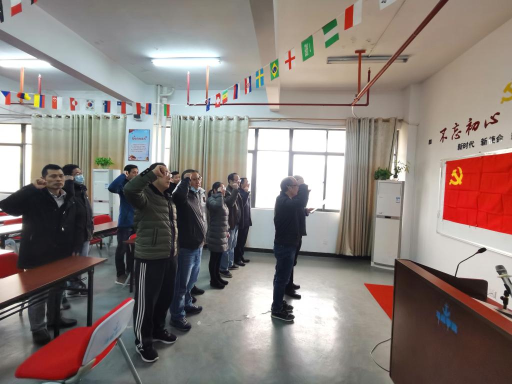 教工第一党支部召开了党员会,举行了预备党员宣誓仪式,党支部书记宣布大会开始,全体人员起立,奏唱国际歌。新党员和老党员同志在鲜红的党旗下,庄严地举起右手,握拳宣誓,由党支部书记领读,重温入党誓词:我志愿加入中国共产党,拥护党的纲领,遵守党的章程,履行党员义务……永不叛党。