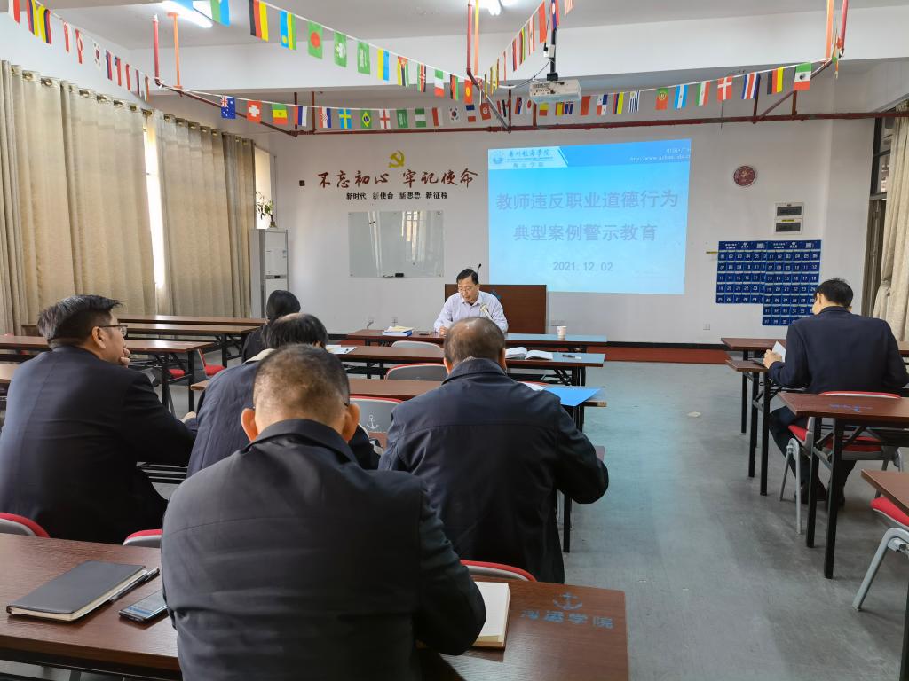 于航海楼512会议室组织召开教师违反职业道德行为典型案例警示教育学习会议,会议由唐人街影院