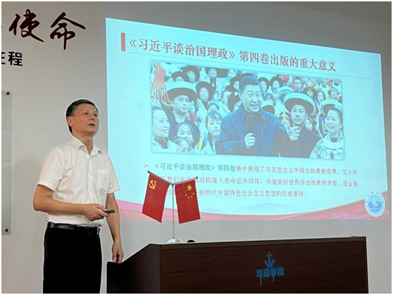 施书记指出,《习近平谈治国理政》第四卷是全面系统反映马克思主义中国化最新成果的权威著作,对进一步推动航海学子学习领会习近平新时代中国特色社会主义思想,在新时代新征程上团结奋斗、勇毅前行具有很强的针对性、指导性。施书记要求同学们要结合学习《习近平谈治国理政》第四卷的重要内容,深刻领会“两个确立”的决定性、长期性、战略性意义,要把习近平总书记的著作与重要论述作为一个整体学习,进一步领悟贯穿其中的马克思主义立场、观点、方法;要深刻把握“国之大者”,学好、学精专业知识,坚定航海专业自信心,开阔眼界,立志民族复兴,为建设海洋强国和交通强国贡献力量,奋力谱写海洋强国和交通强国的崭新篇章。