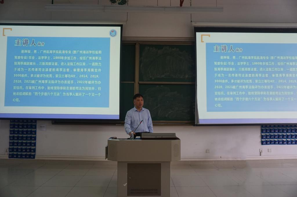 邀请广州海事法院海事法庭副庭长、三级高级法官谢辉程校友在健兵北101室为唐人街影院