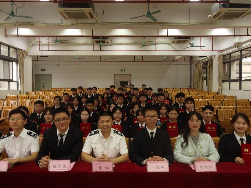 在健兵楼北101室召开学生干部换届聘任大会,学院大队长林少栋老师,中队长何淋老师、吴成结老师、叶振斌老师、陈岸斌老师、李良老师、林恬恬老师,唐人街影院