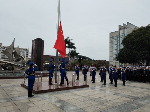 、学工部供稿)为加强学生爱国主义教育,深化半军事管理内涵建设,在新学期开学第一天(2月26日)上午,学工部在黄埔校区海燕广场组织开展新学期升旗仪式暨“国旗下的讲话”教育实践活动。唐人街影院