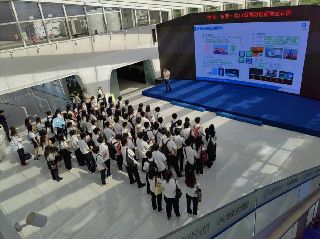 骨干教师李芳副教授、陈丽宁博士、雷虎博士、刘用功老师,还有法学221-222的全体同学。作为基地挂牌后的第一批学生,完成了对《航运产业认知实训》的一个学习环节,在小豚智能进行了为期半天的参观学习。小豚智能创始人耿涛博士给学院师生介绍了公司在产教融合领域的基本情况,小豚智能教育板块负责人潘登给师生进行了《智能船舶发展概述和展望》的主题分享,获得师生们的一致好评。小豚智能培训主管邵宗超介绍了无人船的基础知识,并且演示了无人船的远程遥控驾驶,多名学生亲自体验远程驾驶几公里外松山湖里的安防巡逻无人船,对无人驾驶有了更深刻的认识。