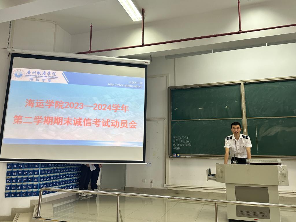 林少栋老师总结了学院本学期开展活动的情况,特别感谢同学们辛勤付出、精心组织,有力推进学院学风建设、半军事管理、文体活动开展,希望同学们能够珍惜这些荣誉和机会,并以获奖同学为榜样,再接再厉、再创佳绩。随后,林少栋老师专题强调了期末考纪考风,要求同学们遵守考场纪律,诚信考试,杜绝作弊行为,同时要动员好班上同学努力学习、积极备考,引导身边同学端正考试态度,共同营造良好的考风,展现海运学子良好的学风与素养。