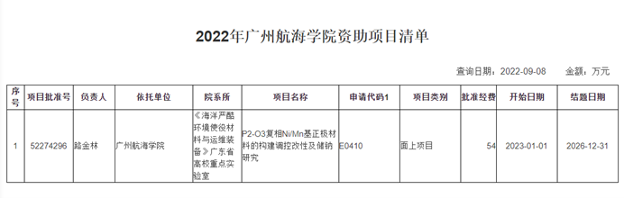 (轮机工程学院 供稿)近日从国家自然科学基金委获悉,我校轮机工程学院《海洋严酷环境使役材料与运维装备》广东省高校重点实验室路金林教授获批国家自然科学基金面上项目。这是尹衍升教授引领的海洋材料学术团队获得的又一可喜成果。