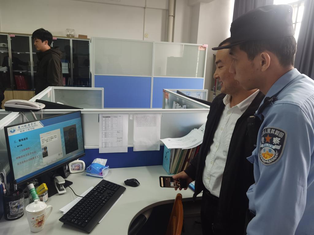 警务工作站吴清达警长等一行莅临轮机工程学院督查学院安全教育工作暨反诈骗专项工作情况,学院党委容柏青书记、张志斌副书记陪同检查指导工作。
