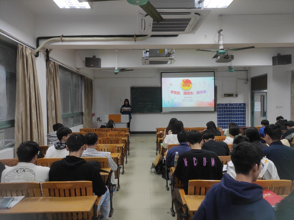 会议伊始,在船电陆182团支部书记杨晗滇主持下进行唱团歌,开展党史学习,特别是学习了习近平总书记“七一”重要讲话精神。而后她汇报了自己作为团支部书记任职期间的工作,谈到了在任职期间遇到的各种问题以及克服方法,提出了在工作中需要“不断地自我反省,不断地自我提升”。