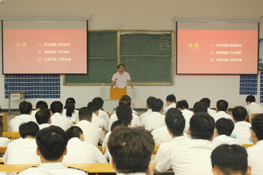 开学第一课让全体学生跟随招书记一同回顾了中国共产党辉煌的历史和非凡的成就,并对未知的未来,报以以下决心:只争朝夕,不负韶华,勇担使命,坚定中国人应有的自豪与骨气,为中华民族的伟大复兴奉献力量。 (撰稿人:轮机181 李奕洲)