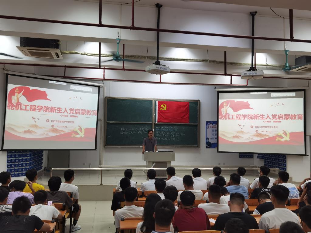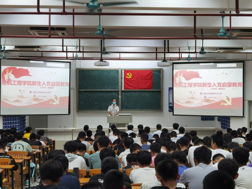 (轮机工程学院供稿)为加强学院学生对中国共产党的认识和了解,帮助学生端正入党动机,提高思想觉悟,引导新生积极主动向党组织靠拢,9月21日,轮机工程学院在健兵北400教室召开了2021级新生入党启蒙教育,学院两个党支部书记郭世俊、赵垒老师,2021级全体新生参加了教育活动。