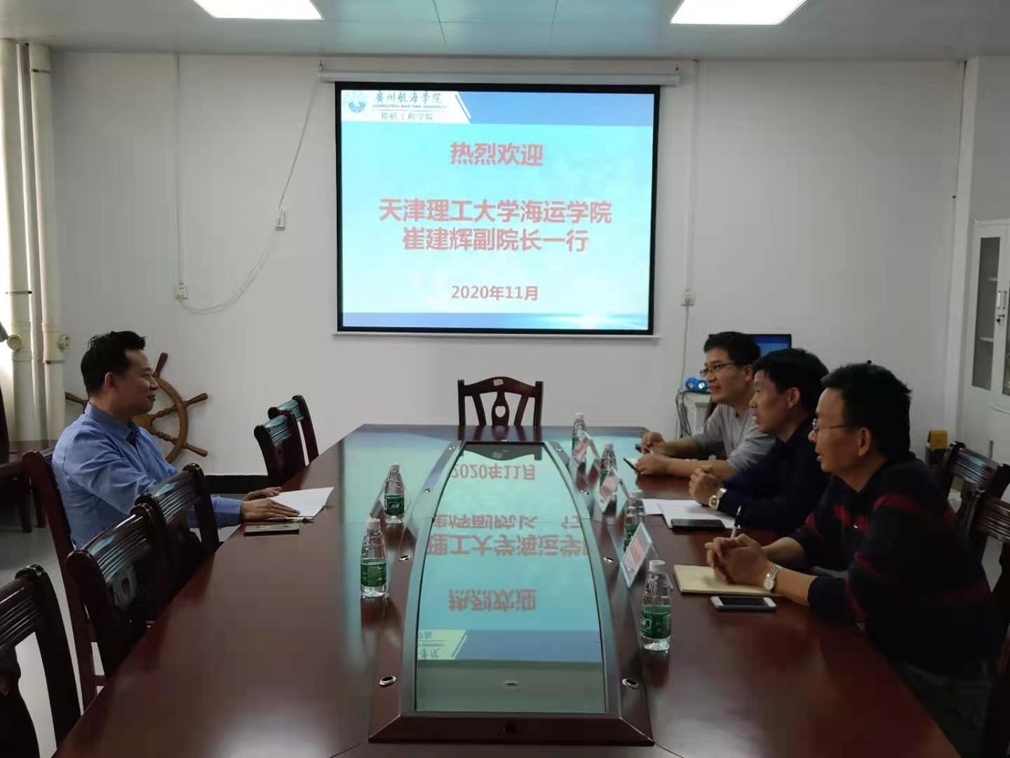 崔建辉副院长来访轮机工程学院交流学习,并与学院领导、相关教师就轮机工程学院人才培养、专业建设、实验室建设及航海类专业“新工科”建设等方面进行了座谈交流。