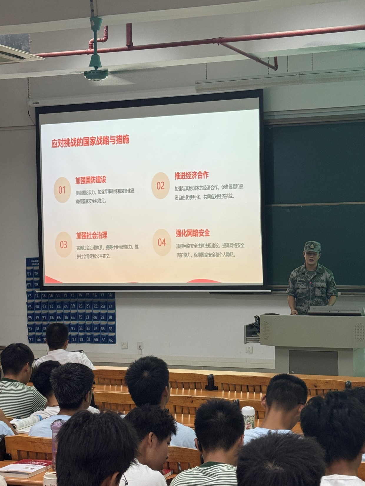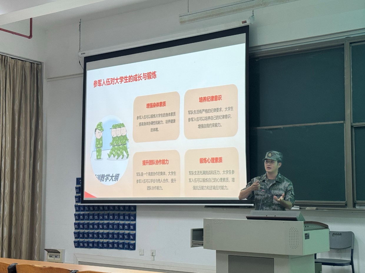 国防教育小组利用晚点名对新生开展国防安全教育宣讲会。宣讲人轮机221班赖卿是一位经验丰富的退伍军人,他以自己的军旅生涯为背景,向新生们强调了国防安全的重要性。