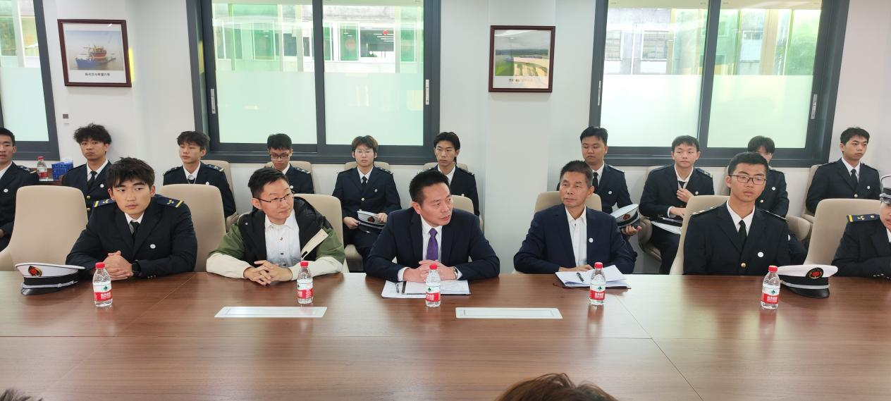 中远海运船员管理有限公司广州分公司是最后一站。卓越班学子们与公司领导进行座谈交流。汪家元副总经理对同学们第一学年的学业状况进行了总结,表扬了优秀学生,并强调学业是大学期间的核心,鼓励同学们珍惜大学时光,努力提升自我,明确职业目标,做有心人,干困难事,立大志向,做到德智体美劳全面发展。他提到,航运产业的快速发展对从业者的综合能力要求日益提高,鼓励同学们积极参与学校社团活动和各类学术竞赛,提升综合素质。