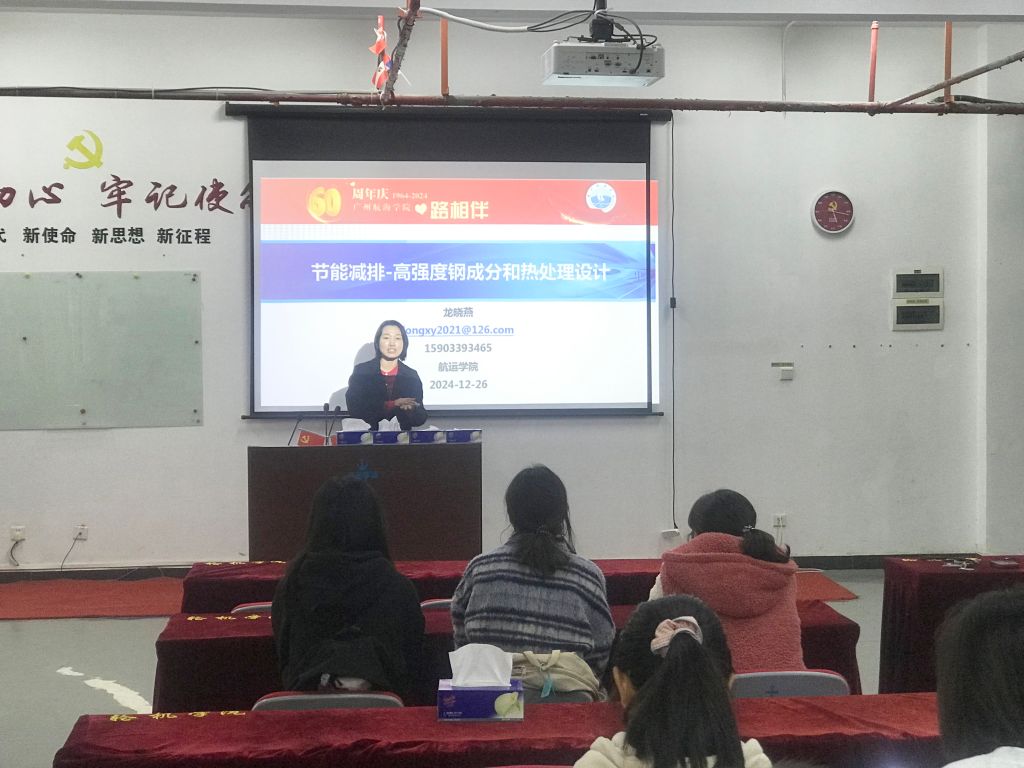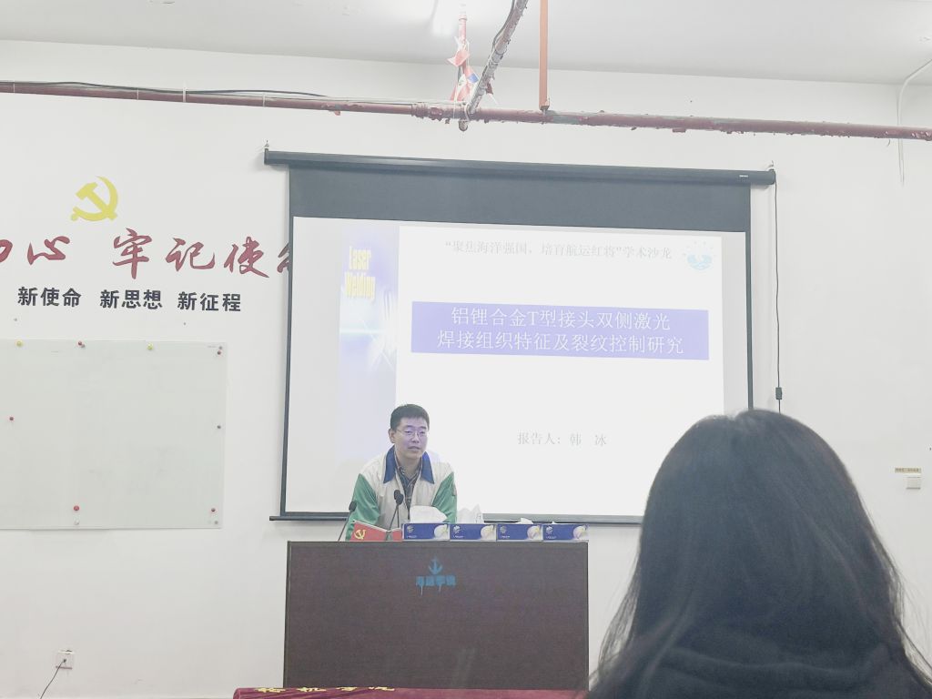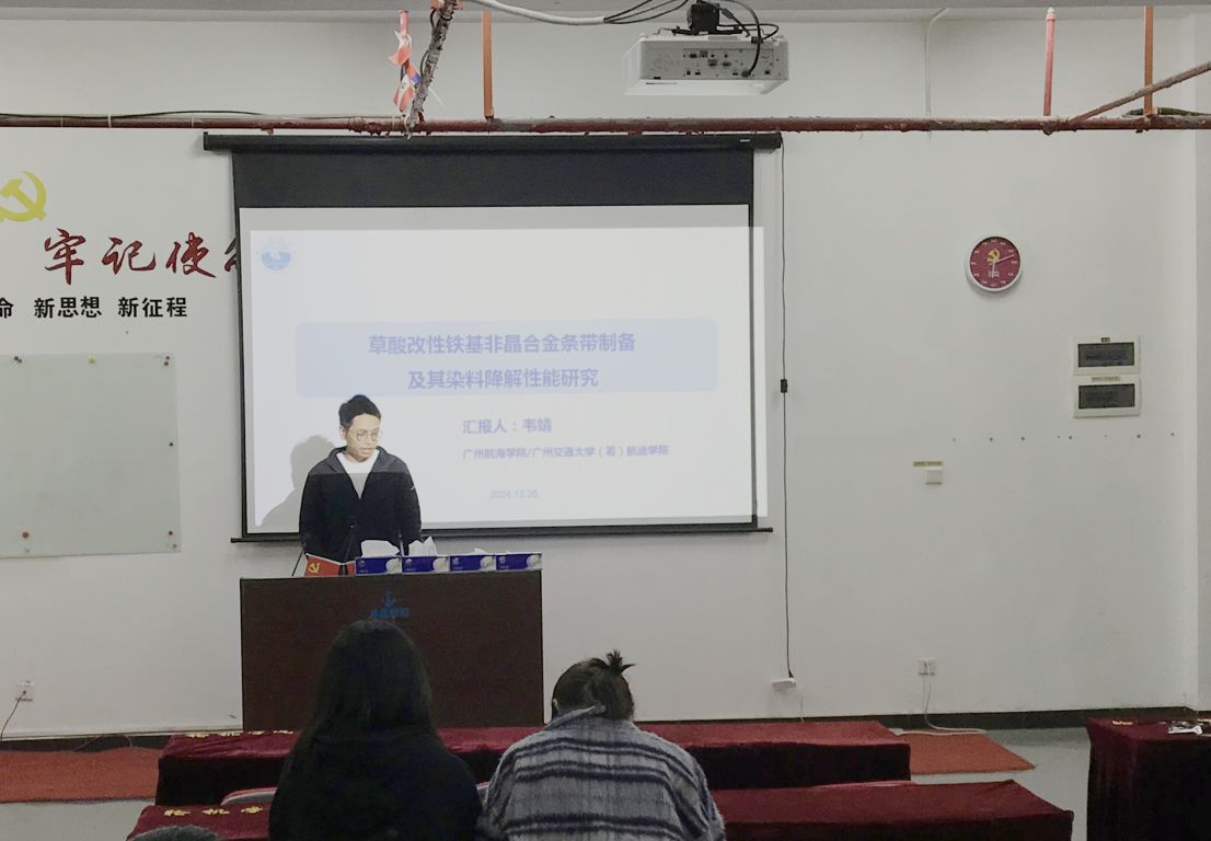 在新能源船舶领域,张国岭博士的《海洋盐雾环境下燃料电池性能衰减的实验研究》报告详细介绍了燃料电池在海洋盐雾环境下的衰减趋势和规律,为船舶燃料电池的可持续性使用提供了有益参考。在交通运输燃料领域,杨玲梅副研究员的《生物柴油,船用新型燃料的制备》报告,深入浅出地介绍了可再生能源的种类、特点及应用前景,并着重讲述了什么是生物柴油及其制备方法。在材料科学领域,韦靖博士则以《草酸改性铁基非晶合金条带制备及其染料降解性能研究》为题,介绍了一种铁基非晶合金材料的表面改性方法,以及其在印染废水处理中的优异表现,为铁基非晶合金处理印染废水提供了一种新的思路。龙晓燕副教授的《节能减排高强度钢成分和热处理设计》分享了高强度素钢的最新研究成果,她详细介绍了高强度钢的成分、性能及应用领域,并探讨了如何通过热处理提升高强度钢的性能。王磊副研究员则报告了《一种升压逆变器的研制》,详细阐述了升压逆变器在船舰电力系统中的关键作用及其未来发展趋势。李芳博士的《海上无线电波传播机理》报告,详细地探讨了海上无线电波传播的机理,以及后续海上无线电传播的发展方向。最后,激光焊接领域韩冰博士做了《铝锂合金T型接头的等轴细晶区局部软化问题研究》的汇报,详细地介绍了铝锂合金T型接头的等轴细晶区局部软化问题,并向本科生们分享了他读博过程中的心路历程。