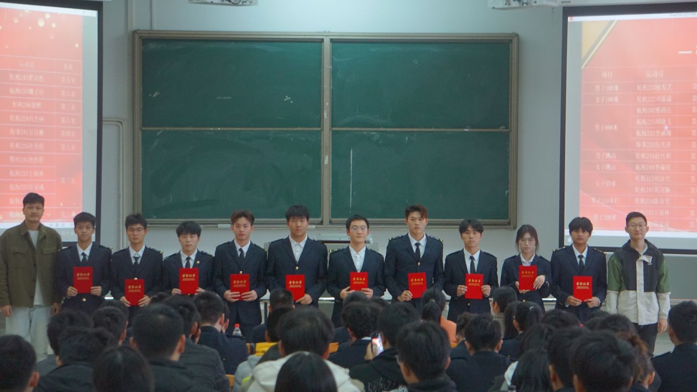 会上,何淋老师宣读2024年航运学子获得省级以上奖项表彰名单,希望全体同学要以受表彰的同学为榜样,刻苦学习,全面发展,立志成才;付晓平、邵志敏两位老师为获得省级以上奖项学生代表颁奖。赵双双老师宣读表彰2024年校运会唐人街影院