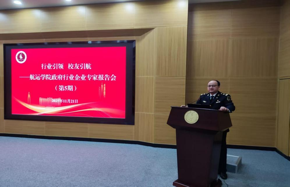 在B10图书馆胜海厅举办第5期政府行业企业专家报告会。本期活动邀请了广州海事局船员管理专家、广东海事局第一层次人才、广东海事局师资库成员郑和锦主讲,100多名2025级学生到场聆听。广州海事局政务中心副主任陈岱伟出席并讲话。