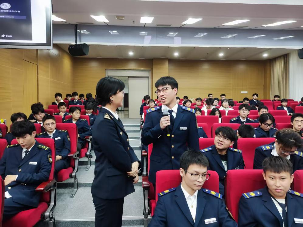陈岱伟介绍了广州海事局政务中心的基本情况,以自身为例讲述了如何从学生晋升为船长并成功转型到广州海事局的历程,勉励在校学子要认真学习,掌握专业技能,坚守职业长远发展。郑和锦以古语为介,引导学生树立人生之志化人生航标,围绕“船员证书”和“就业方向”两方面多角度进行了讲解,多层次地带领学生探索职业规划的路径和方式方法,培养终身学习、积极运动等良好习惯,充分做好防范风险与挑战的准备。