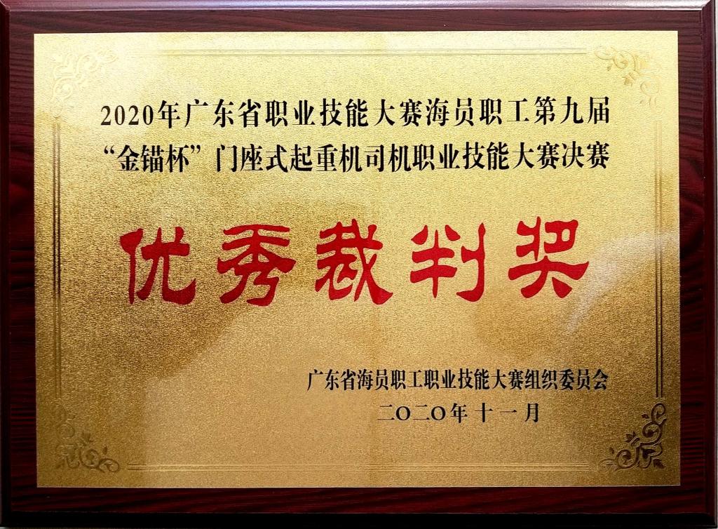 优秀裁判奖——广东省第九届“金锚杯”海员职工起重装卸机械操作工职业技能竞赛